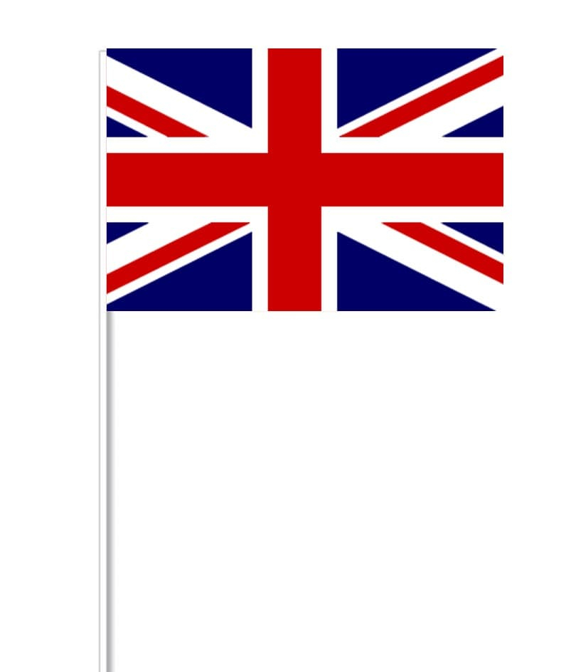 En brittisk flagga på pinne, perfekt att dekorera med till födelsedagen, då det ska firas ordentligt.